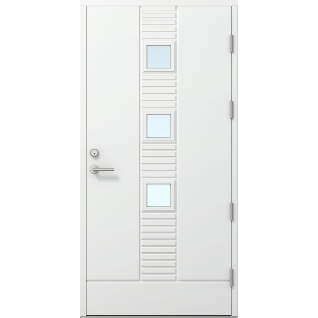 HDF-pind, tugevdatud alumiiniumplaadiga. Uste konstruktsioon on valmistatud pikijätkatud männipuidust, mida on kombineeritud vineeriga. Kogupaksus on 62 mm, soojusisolatsiooniga ukse paksus on 86 mm. Välimine külg dekoratiivse freesitud mustriga, sisemine külg sile. Saadaval ka dekoratiivse freesitud mustrita, st sileda pinnaga mõlemal küljel.