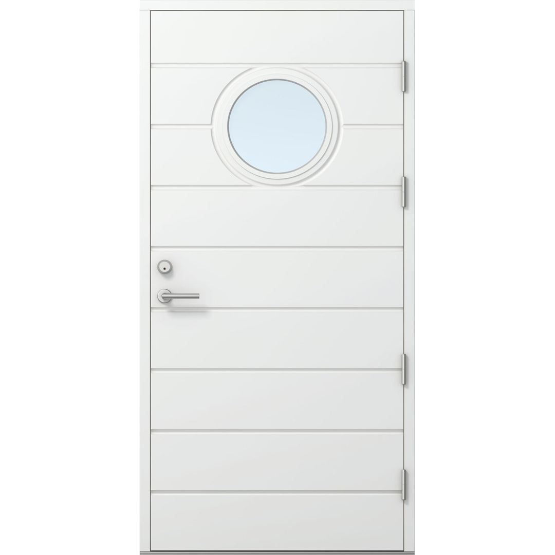 HDF-pind, tugevdatud alumiiniumplaadiga. Uste konstruktsioon on valmistatud pikijätkatud männipuidust, mida on kombineeritud vineeriga. Kogupaksus on 62 mm, soojusisolatsiooniga ukse paksus on 86 mm. Välimine külg dekoratiivse freesitud mustriga, sisemine külg sile. Saadaval ka dekoratiivse freesitud mustrita, st sileda pinnaga mõlemal küljel.