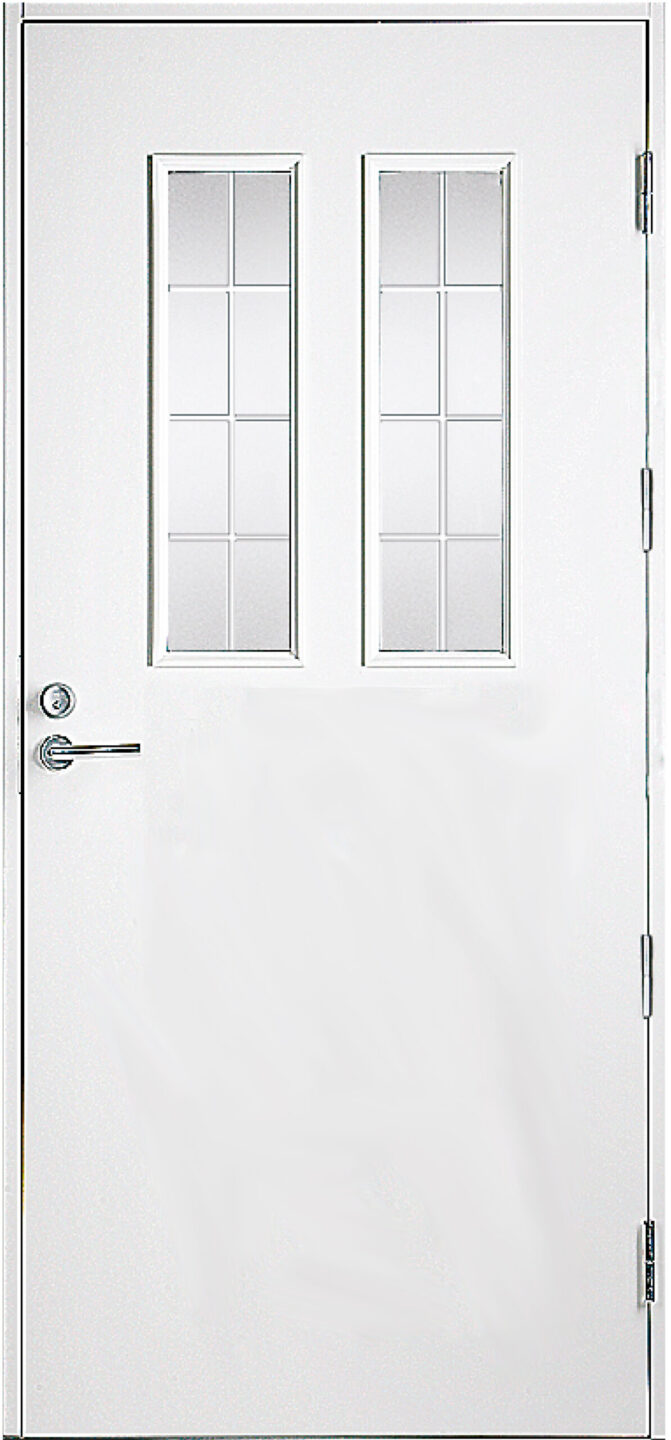 HDF-pind, tugevdatud alumiiniumplaadiga. Uste konstruktsioon on valmistatud pikijätkatud männipuidust, mida on kombineeritud vineeriga. Kogupaksus on 62 mm, soojusisolatsiooniga ukse paksus on 86 mm. Välimine külg dekoratiivse freesitud mustriga, sisemine külg sile. Saadaval ka dekoratiivse freesitud mustrita, st sileda pinnaga mõlemal küljel.