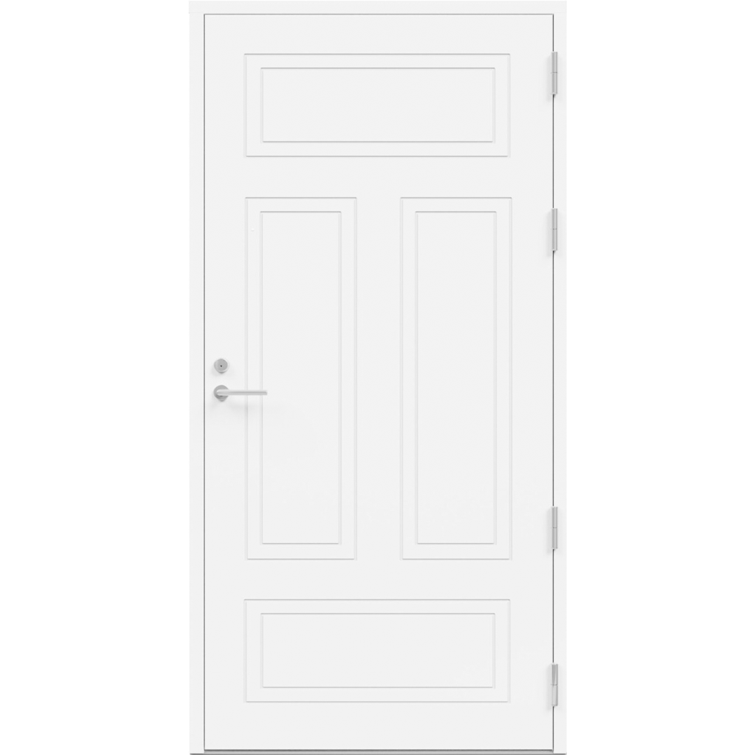 HDF-pind, tugevdatud alumiiniumplaadiga. Uste konstruktsioon on valmistatud pikijätkatud männipuidust, mida on kombineeritud vineeriga. Kogupaksus on 62 mm, soojusisolatsiooniga ukse paksus on 86 mm. Välimine külg dekoratiivse freesitud mustriga, sisemine külg sile. Saadaval ka dekoratiivse freesitud mustrita, st sileda pinnaga mõlemal küljel.