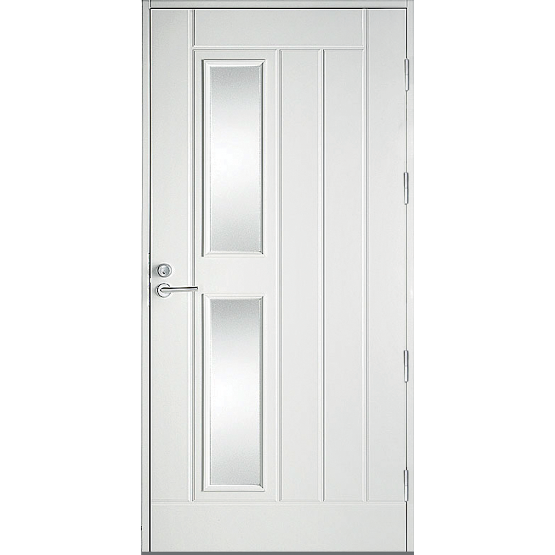HDF-pind, tugevdatud alumiiniumplaadiga. Uste konstruktsioon on valmistatud pikijätkatud männipuidust, mida on kombineeritud vineeriga. Kogupaksus on 62 mm, soojusisolatsiooniga ukse paksus on 86 mm. Välimine külg dekoratiivse freesitud mustriga, sisemine külg sile. Saadaval ka dekoratiivse freesitud mustrita, st sileda pinnaga mõlemal küljel.