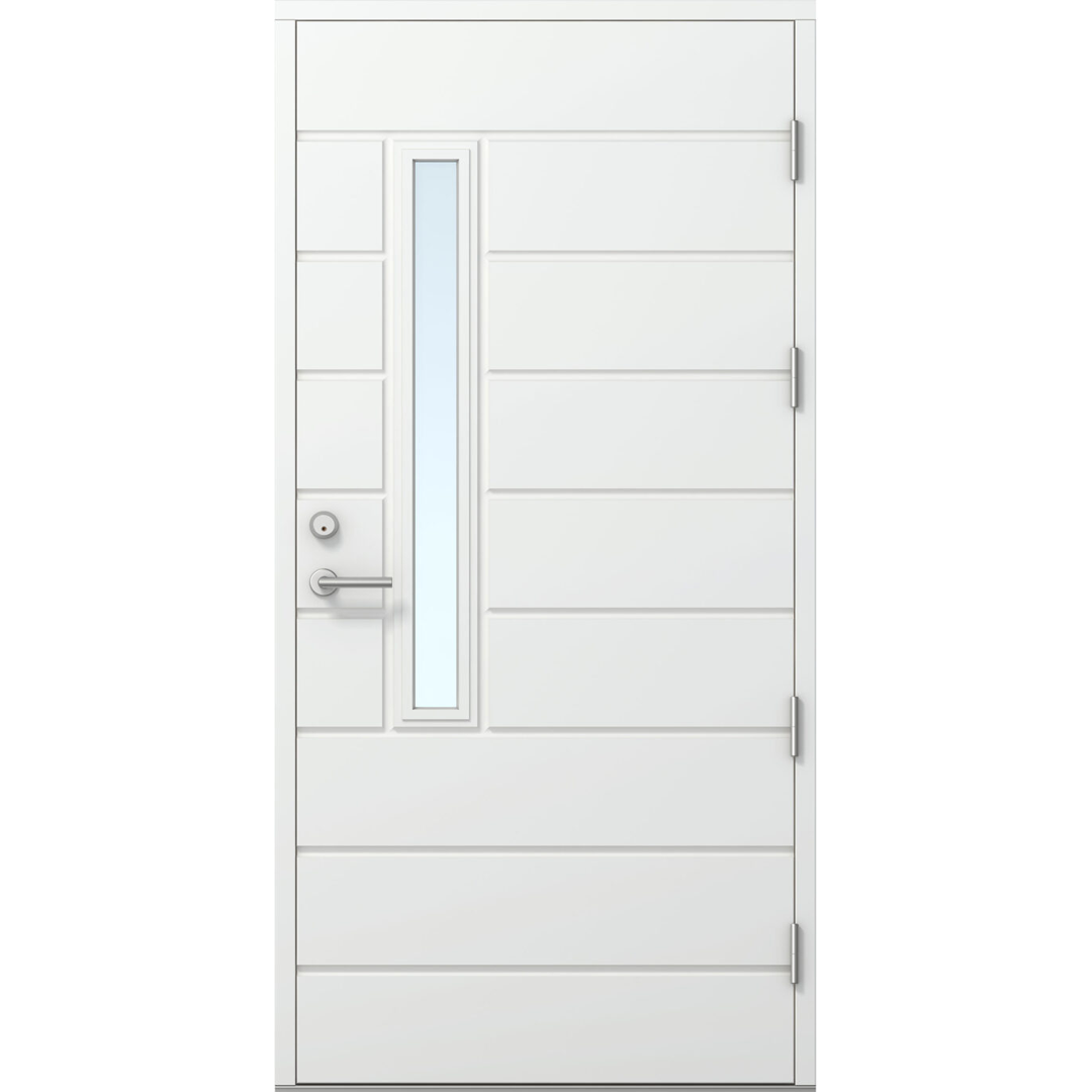 HDF-pind, tugevdatud alumiiniumplaadiga. Uste konstruktsioon on valmistatud pikijätkatud männipuidust, mida on kombineeritud vineeriga. Kogupaksus on 62 mm, soojusisolatsiooniga ukse paksus on 86 mm. Välimine külg dekoratiivse freesitud mustriga, sisemine külg sile. Saadaval ka dekoratiivse freesitud mustrita, st sileda pinnaga mõlemal küljel.