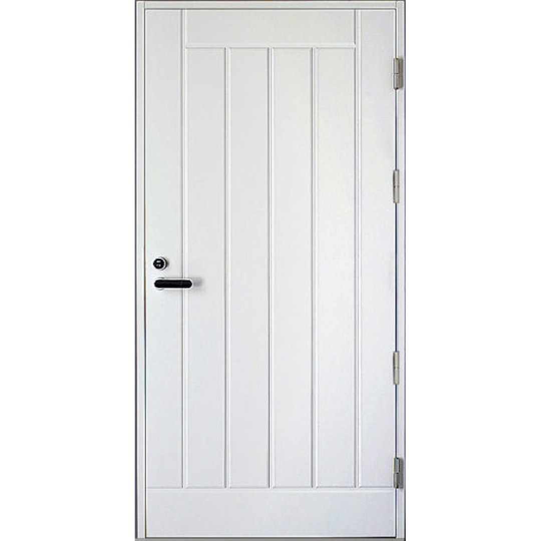 HDF-pind, tugevdatud alumiiniumplaadiga. Uste konstruktsioon on valmistatud pikijätkatud männipuidust, mida on kombineeritud vineeriga. Kogupaksus on 62 mm, soojusisolatsiooniga ukse paksus on 86 mm. Välimine külg dekoratiivse freesitud mustriga, sisemine külg sile. Saadaval ka dekoratiivse freesitud mustrita, st sileda pinnaga mõlemal küljel.
