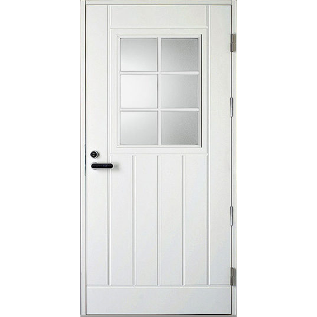 HDF-pind, tugevdatud alumiiniumplaadiga. Uste konstruktsioon on valmistatud pikijätkatud männipuidust, mida on kombineeritud vineeriga. Kogupaksus on 62 mm, soojusisolatsiooniga ukse paksus on 86 mm. Välimine külg dekoratiivse freesitud mustriga, sisemine külg sile. Saadaval ka dekoratiivse freesitud mustrita, st sileda pinnaga mõlemal küljel.