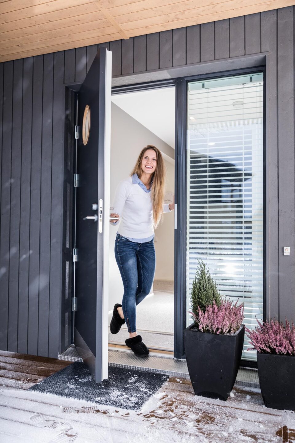 HDF-pind, tugevdatud alumiiniumplaadiga. Uste konstruktsioon on valmistatud pikijätkatud männipuidust, mida on kombineeritud vineeriga. Soojusisolatsiooniga ukse kogupaksus on 86 mm. Pind on mõlemalt poolt sile, ilma dekoratiivse graveeringuta. Ukse välisküljel on standardvarustuses 160 mm kõrgune matt alumiiniumplaat, mis kaitseb ust kriimustuste ja löökide eest. Klaasiliistud on valmistatud PVC-st, värvitud alumiiniumtoonis või mistahes toonis vastavalt soovile.