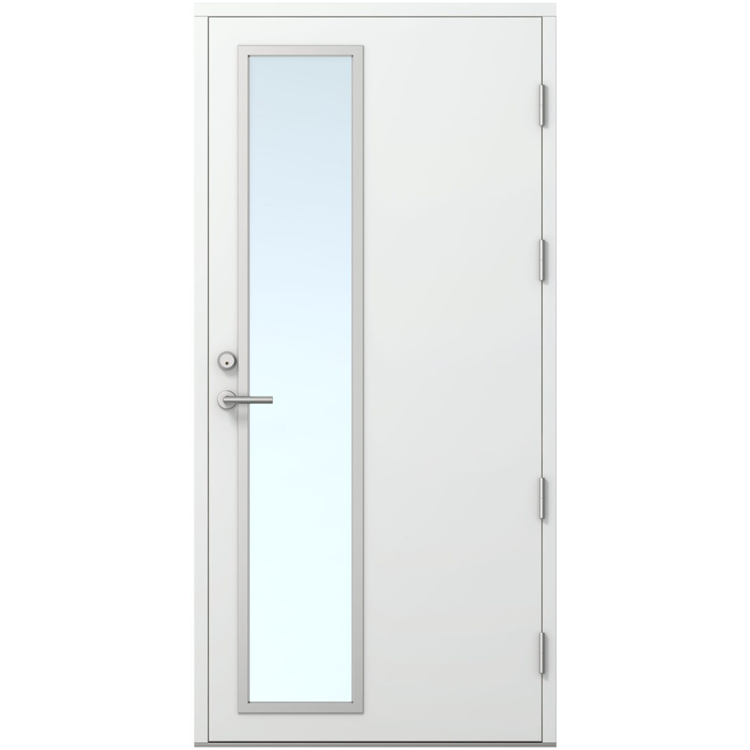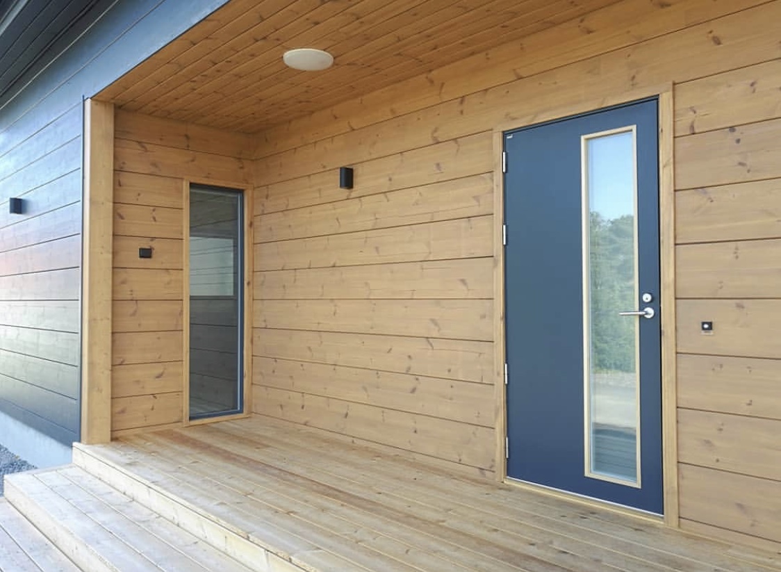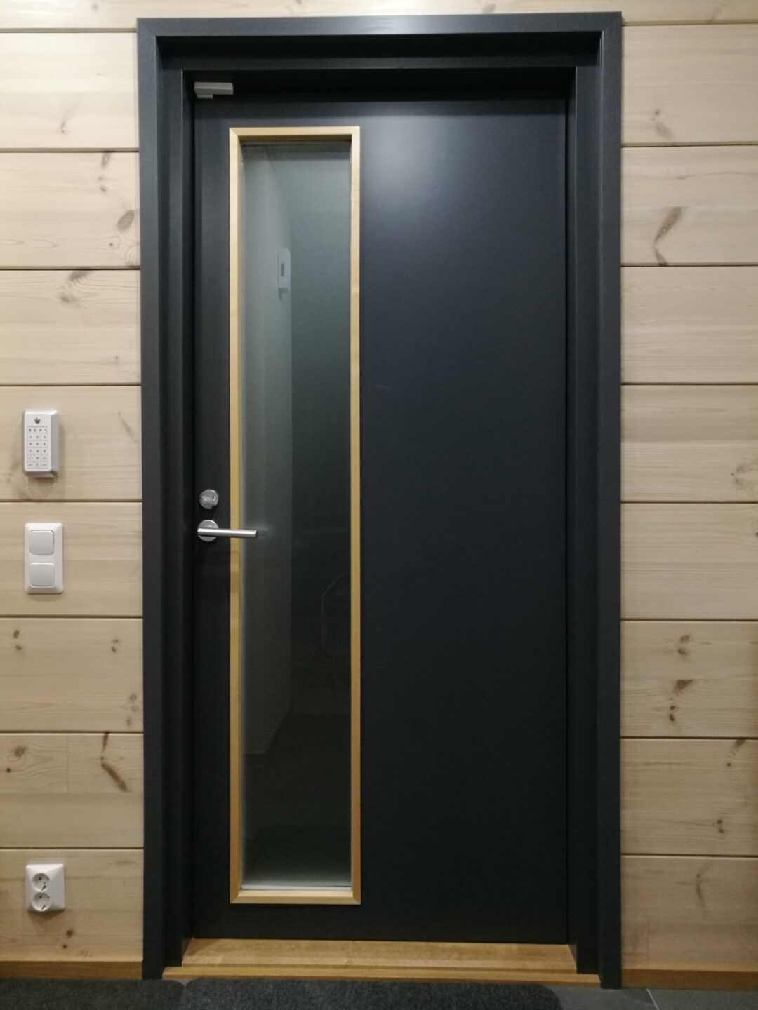 HDF-pind, tugevdatud alumiiniumplaadiga. Uste konstruktsioon on valmistatud pikijätkatud männipuidust, mida on kombineeritud vineeriga. Soojusisolatsiooniga ukse kogupaksus on 86 mm. Dekoratiivse freesitud mustrita. Klaasiliistud on valmistatud PVC-st, värvitud alumiiniumtoonis või mistahes toonis vastavalt soovile.