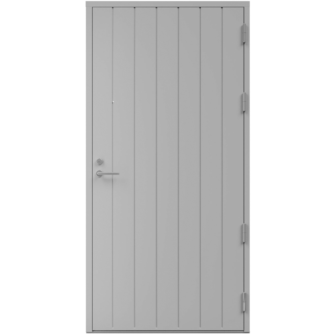HDF-pind, tugevdatud alumiiniumplaadiga. Uste konstruktsioon on valmistatud pikijätkatud männipuidust, mida on kombineeritud vineeriga. Soojusisolatsiooniga ukse kogupaksus on 86 mm. Välimine külg dekoratiivse freesitud mustriga, sisemine külg sile. Saadaval ka dekoratiivse freesitud mustrita, st sileda pinnaga mõlemal küljel.
