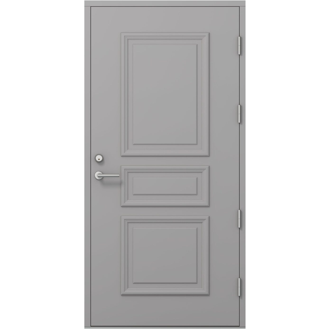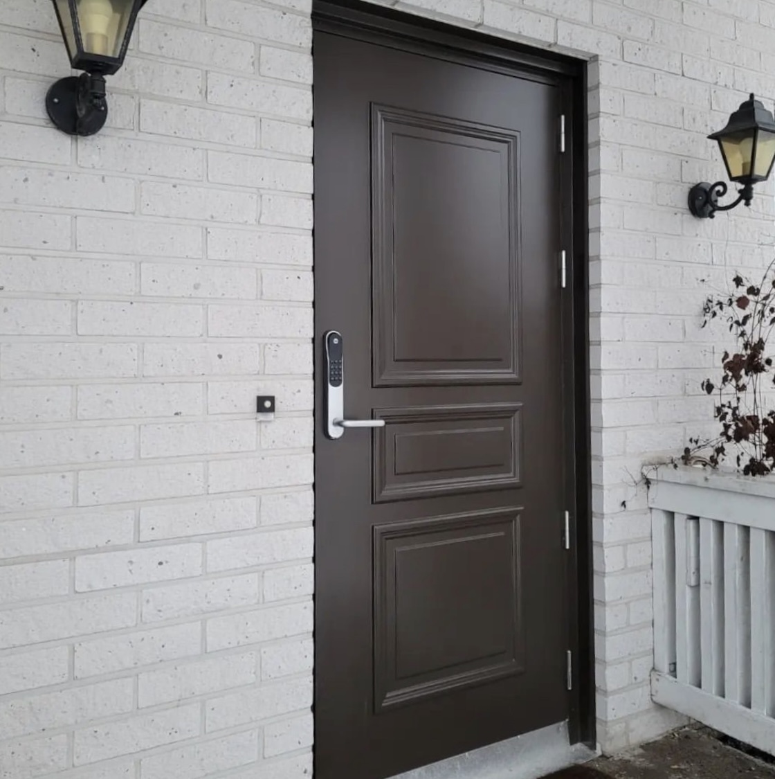 HDF-pind, tugevdatud alumiiniumplaadiga. Vineeri ja liimpuidu kombinatsioonist valmistatud uksekaunistused. Soojusisolatsiooniga ukse paksus on 86 mm. Klaas ja kaunistused taluvad temperatuuri ja niiskuse kõikumisi. Ukse sisepind on sile.