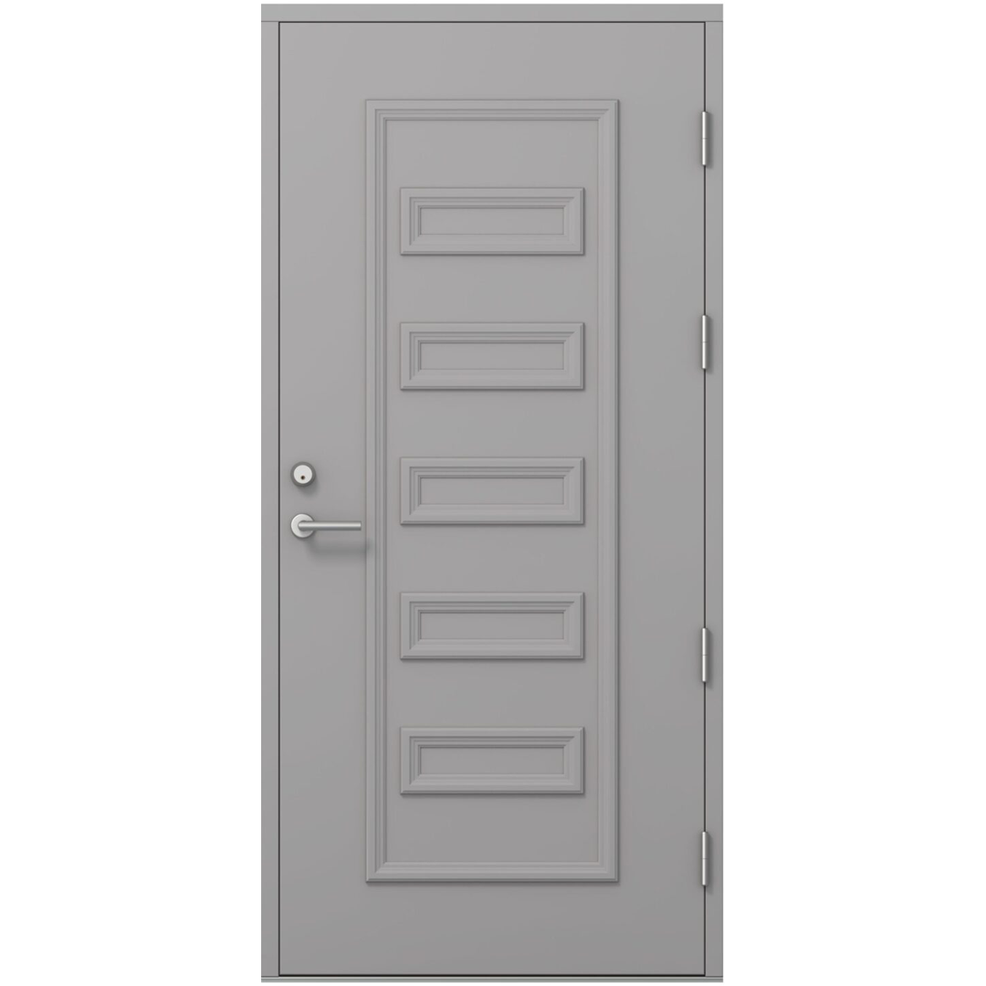 HDF-pind, tugevdatud alumiiniumplaadiga. Vineeri ja liimpuidu kombinatsioonist valmistatud uksekaunistused. Soojusisolatsiooniga ukse paksus on 86 mm. Klaas ja kaunistused taluvad temperatuuri ja niiskuse kõikumisi. Ukse sisepind on sile.