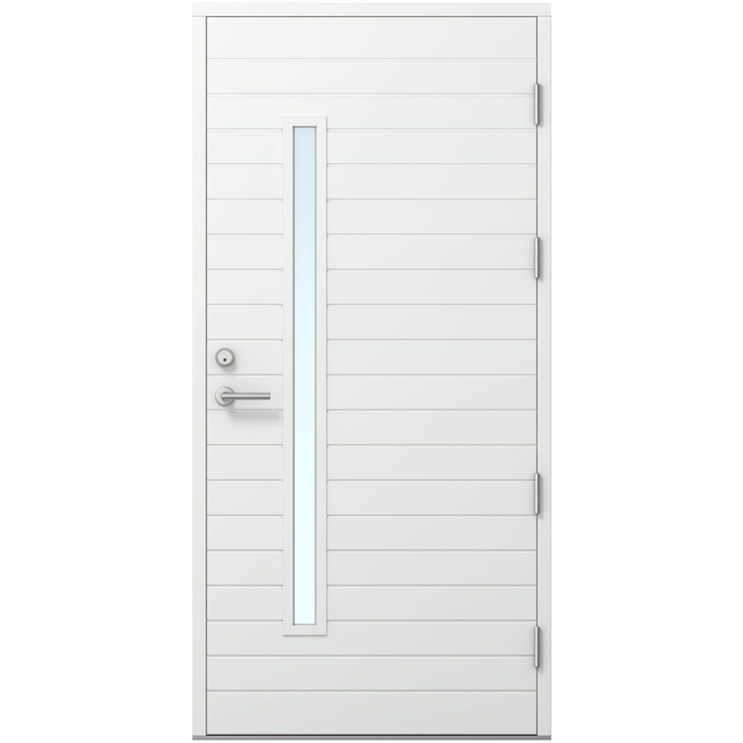 HDF-pind, tugevdatud alumiiniumplaadiga. Uste konstruktsioon on valmistatud pikijätkatud männipuidust, mida on kombineeritud vineeriga. Soojusisolatsiooniga ukse kogupaksus on 86 mm. Pind on mõlemalt poolt sile, ilma dekoratiivse graveeringuta. Ukse välisküljel on standardvarustuses 160 mm kõrgune matt alumiiniumplaat, mis kaitseb ust kriimustuste ja löökide eest. Klaasiliistud on valmistatud PVC-st, värvitud alumiiniumtoonis või mistahes toonis vastavalt soovile.