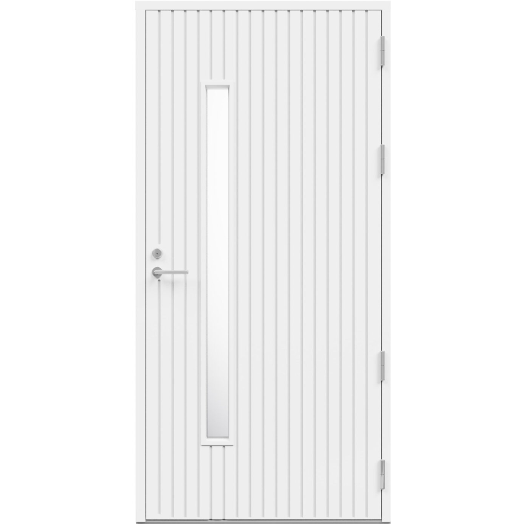 HDF-pind, tugevdatud alumiiniumplaadiga. Uste konstruktsioon on valmistatud pikijätkatud männipuidust, mida on kombineeritud vineeriga. Soojusisolatsiooniga ukse kogupaksus on 86 mm. Välimine külg dekoratiivse freesitud mustriga, sisemine külg sile. Saadaval ka dekoratiivse freesitud mustrita, st sileda pinnaga mõlemal küljel.